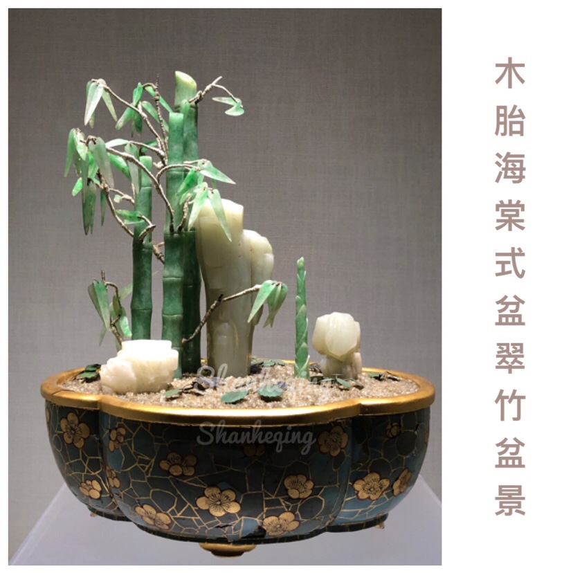 珍宝馆*清宫旧藏*木胎海棠式盆翠竹盆景