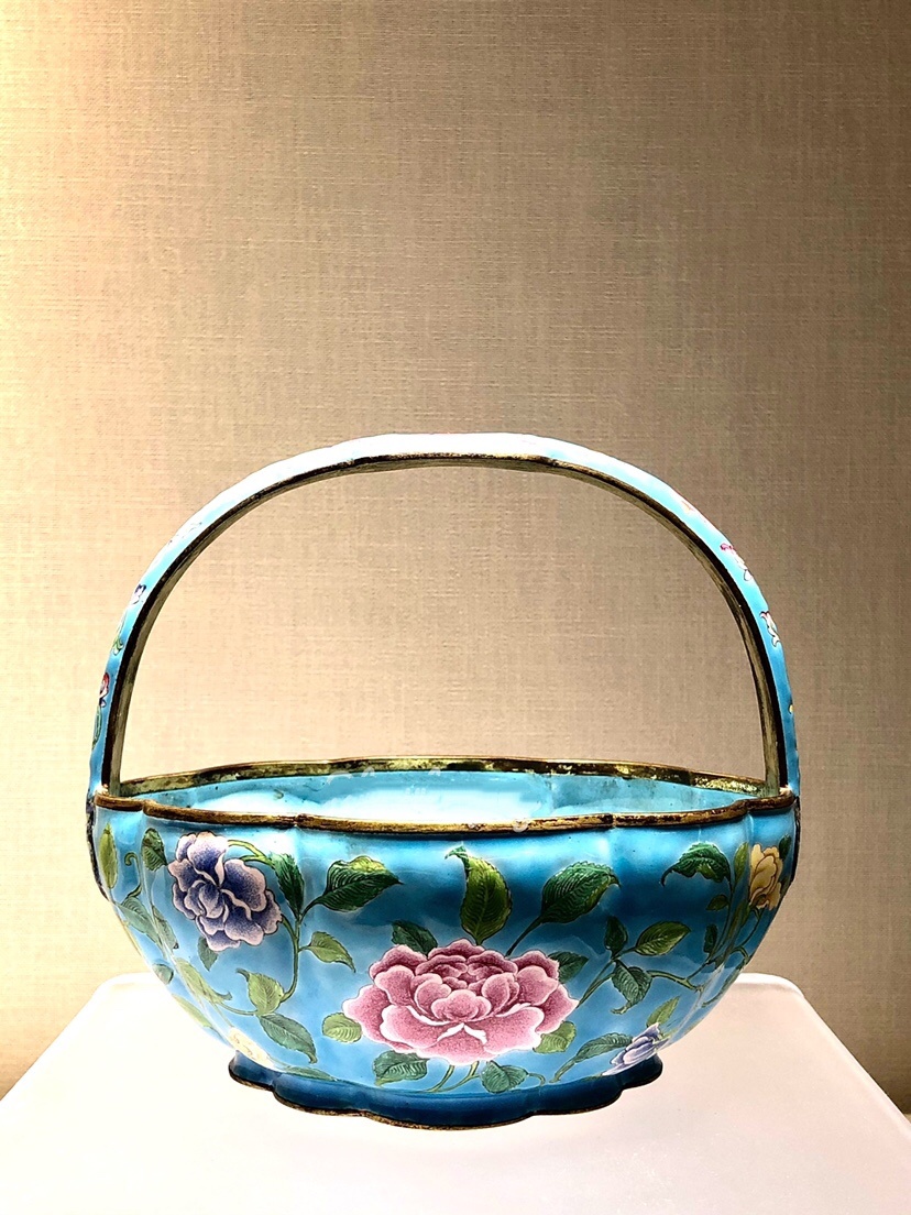 珍宝馆*清宫旧藏*画珐琅牡丹纹葵花式花篮
