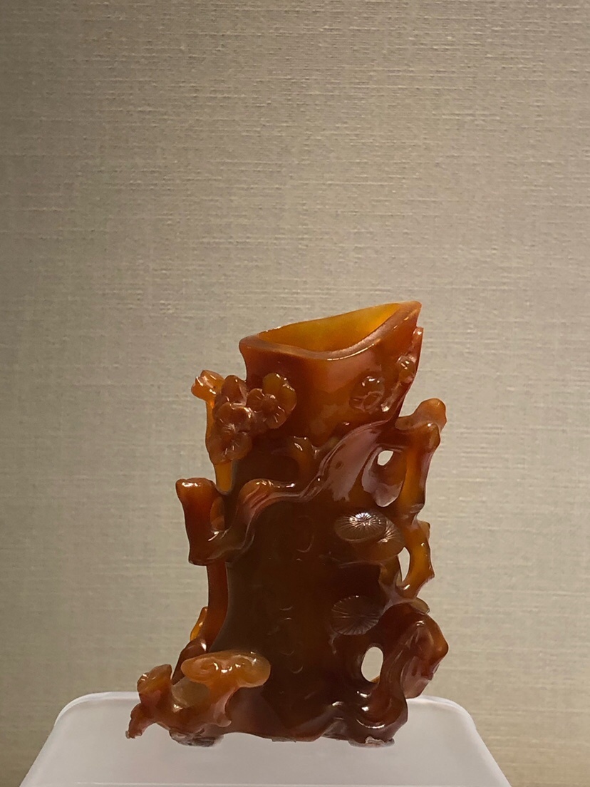 3、玛瑙雕梅竹松桩式花插 ;