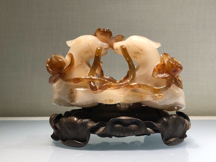 5、玛瑙巧雕卧莲鸳鸯 ;