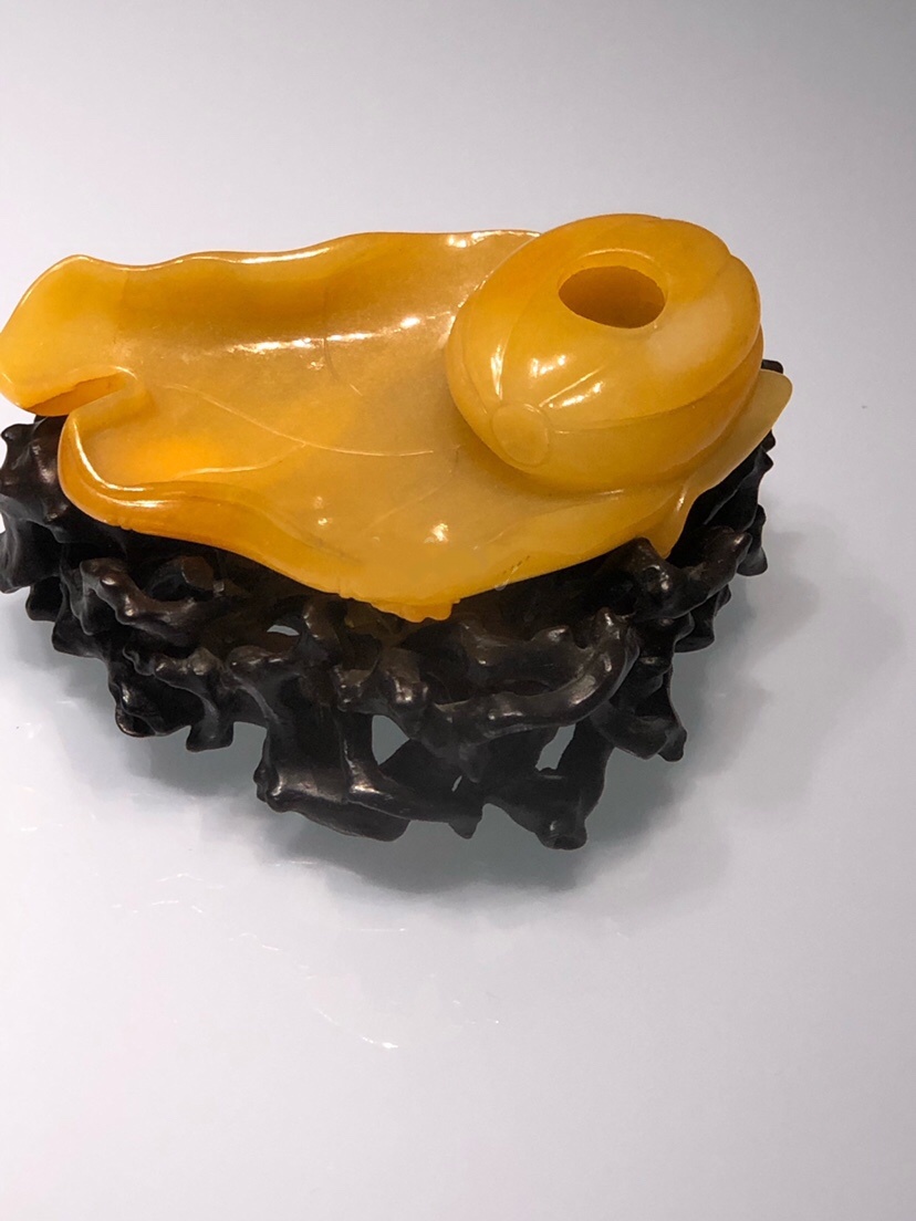 7、玛瑙雕瓜叶式水盛。