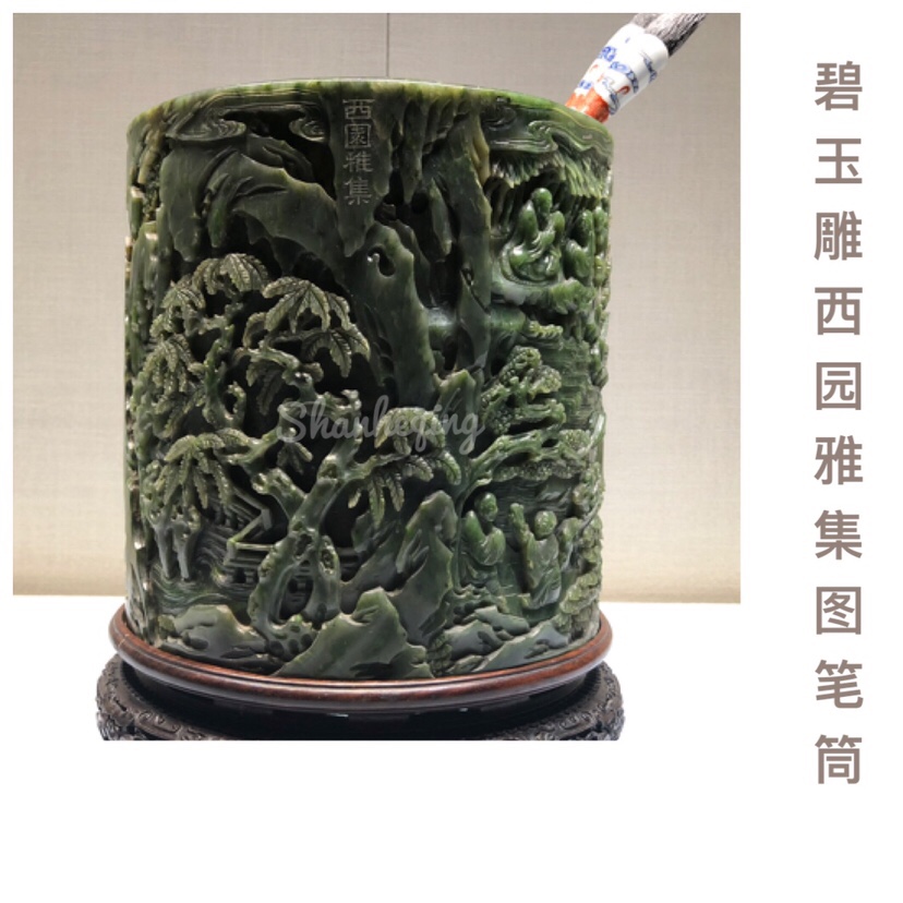 珍宝馆*故宫藏玉之碧玉雕西园雅集图笔筒