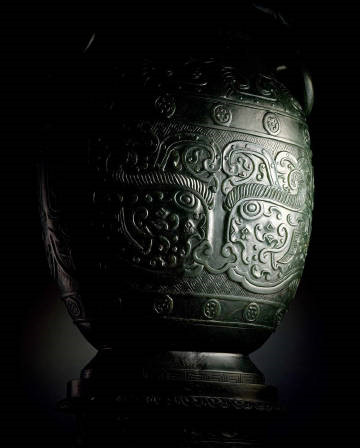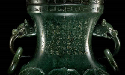综上,此件清乾隆御制诗文碧玉大瓶玉质莹润,风格古朴典雅,雕工讲究、巨细靡遗,具有典型乾隆期仿古玉器的意蕴,非能工巧匠不可做,有王者之风,不仅是乾隆时期宫廷玉器的艺术结晶,也是研究清代宫廷文化、玉器工艺的重要实物依据,为不可多得的玉雕珍品。