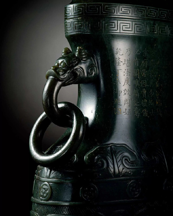 清乾隆1787年 碧玉御题诗兽面纹活环大盖瓶
