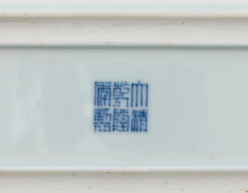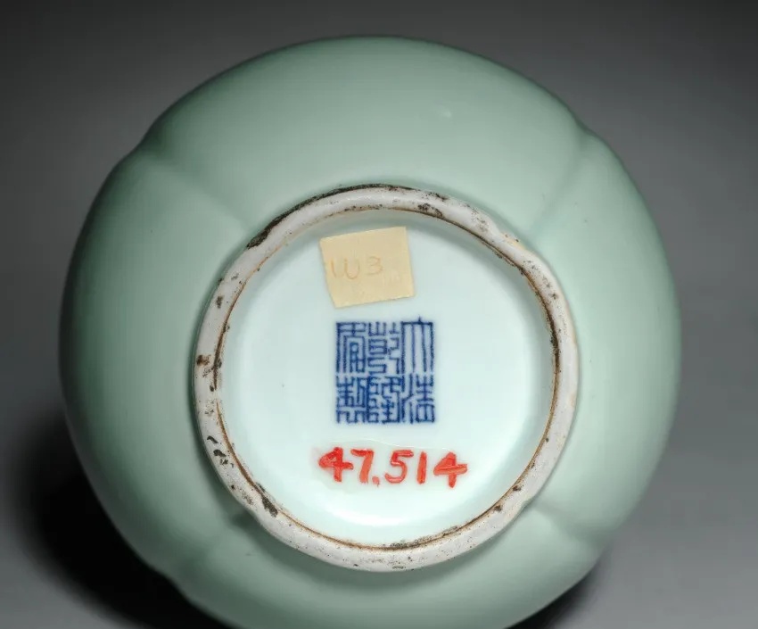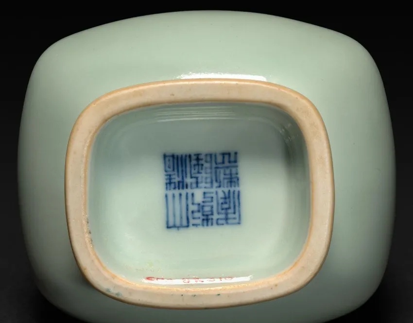 清代豆青釉淡雅柔和,色浅者淡若湖水,色深者绿中泛黄,釉面凝厚。清代烧造豆青釉的同时,还在釉上施以各种色彩入窑二次烧造,淡雅的釉色衬托下的色彩,更加艳丽妩媚。