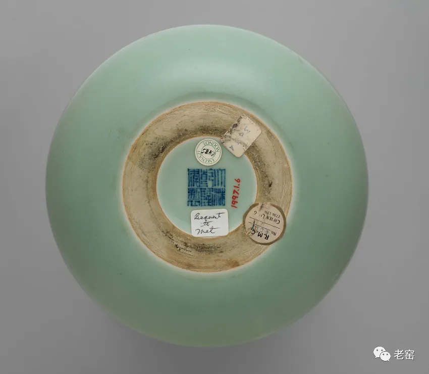豆青釉起源于宋代的龙泉窑和东青原属一类,明以前微近黄色,至清代纯近绿色。其釉色为青中泛黄,釉面光泽比粉青、梅子青弱。