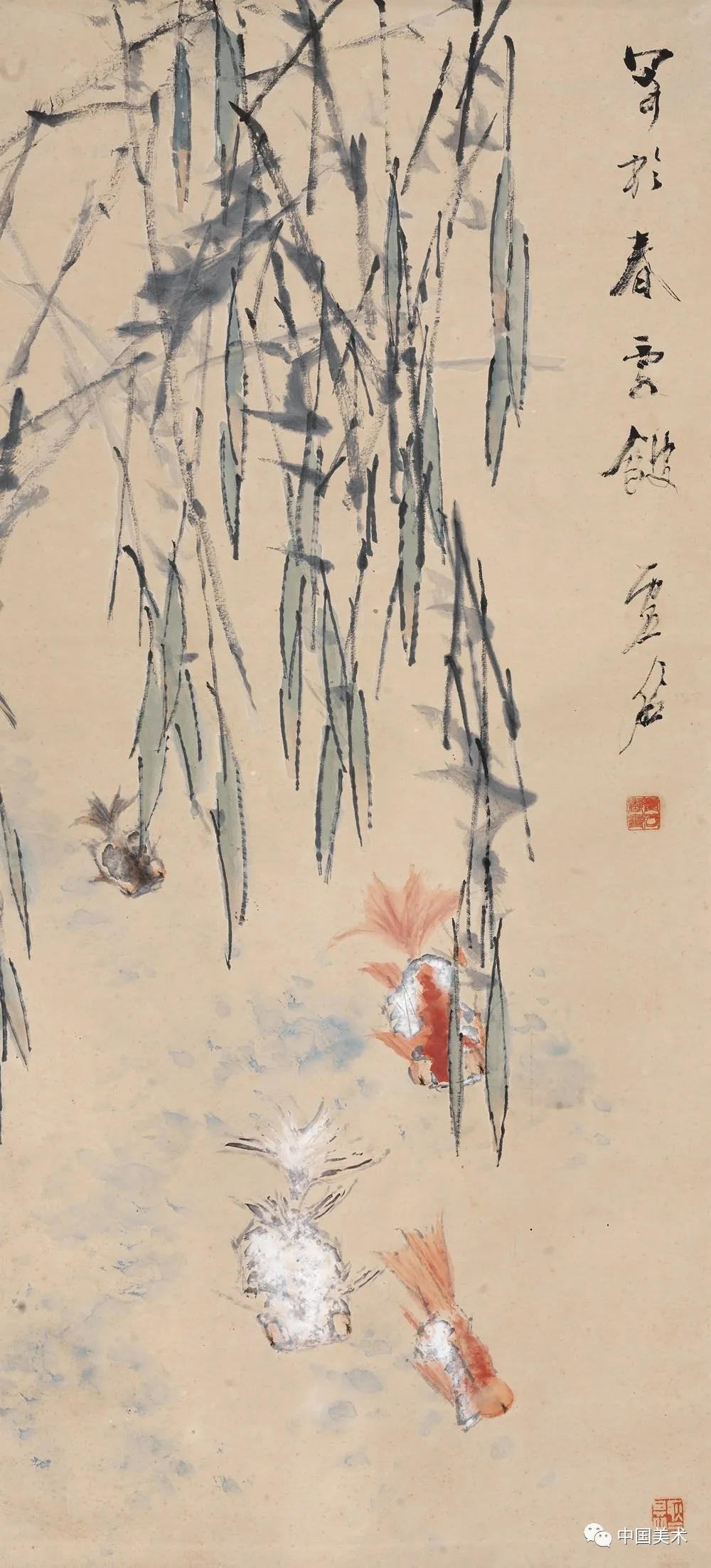 清 虚谷 柳塘金鱼