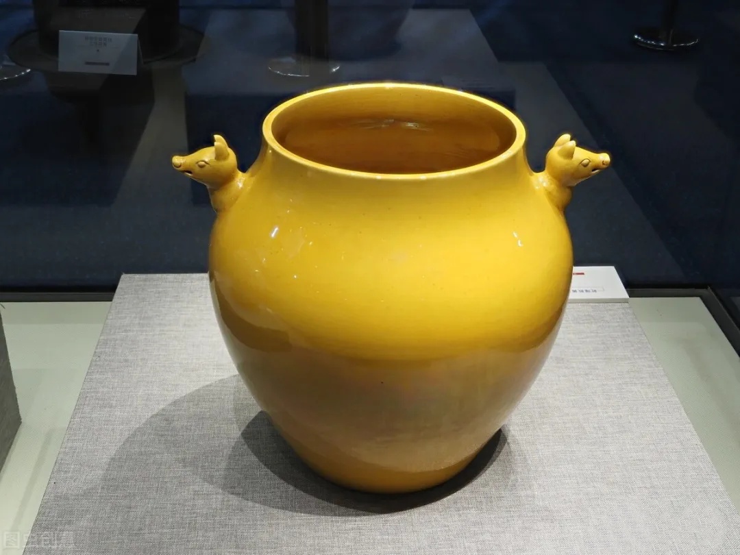 据史料记载,唐英所制作的颜色釉,共有57种之多。可谓空前绝后。乾隆颜色釉瓷器才是代表乾隆官窑最顶级水平的制作。唐窑之器有仿古各釉色,又创制洋紫、冻青、银洋彩、水墨鸟金、珐琅、洋彩、黑地五彩、蓝花、黑花描金、窑变等,集釉色美之大成。图为乾隆黄釉鹿耳尊。