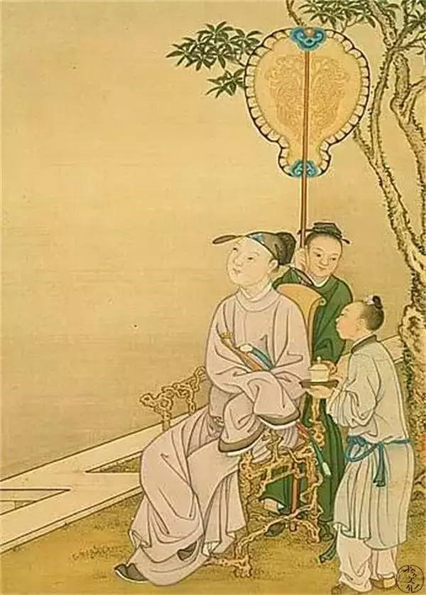 冷枚,字吉臣,康熙(西元一六六二–一七二二)时宫廷画家,擅长画人物、山水。农曆八月十五是一年秋季正中,所以称中秋,是桂花盛开、飘香的季节,此时月光也最为明亮皎洁,是赏月最好时节。中秋赏月在唐代已是约定俗成的传统节日,有阖家团圆赏月,也有三五好友相聚登楼赋诗,而此幅士人静坐独赏清辉明月,别有一番情趣。画中阴阳明暗的表现,是受到西洋光影技法的影响。