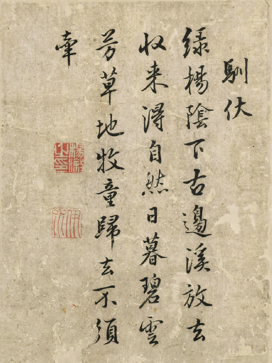 是套八开册的《牧牛图册》,现为广州艺术博物院收藏,每开一图并有杨溆(活跃于十七世纪)的对题。画册自清初至民国无任何递藏记录。从其藏印可知,这套画册在民国时期曾为广东收藏家、东莞梁柏如所收藏,递藏至杨铨后,再由杨铨捐入公藏。这套画册尺幅虽小而画作用笔精细,树、石、牛勾勒、晕染、皴擦的用笔、用墨习惯,以及款识、印章,均可与传世的张穆真迹一一对应。对题的作者杨溆,生平未可考,但应与张穆同时代。一套传为元代、佚名的《十八罗汉册》中,每开的对题作者有谢长文、今释、陈恭尹、杨钟岳、唐元楫、吴秋、石鉴、杨溆、韦瞿、农山虞、成式、阮解、方国骅、今无、张穆。是套画册在二十世纪中经潘熙、刘作筹递藏,曾在1940年于广东文物展中展出,现由香港艺术馆收藏。张穆的《牧牛图册》以及佚名《十八罗汉册》的对题,证明了杨溆与张穆同时代,二人均在明遗民的交游圈内,应有所交往。《牧牛图册》款署“辛亥端午写,张穆”,可知画册作于1671年(康熙十年),为张穆晚年(时年虚岁六十五岁)之作品。此画册被收录于《东莞历代书画选》以及《岭南画库·张穆》。张穆创作《牧牛图册》,是以普明禅师的《牧牛图颂》(又称《十牛图颂》,本文统称《牧牛图颂》)为蓝本。杨溆书写的对题,其题目以及诗文也全录普明禅师的《牧牛图颂》颂偈。因此可以断定,《牧牛图册》原应为十开册,其题目分别是《未牧》《初调》《受制》《回首》《驯伏》《无碍》《任运》《相忘》《独照》和《双泯》。很可惜在流传的过程中遗失了两开,分别是第一开《未牧》以及第三开《受制》。