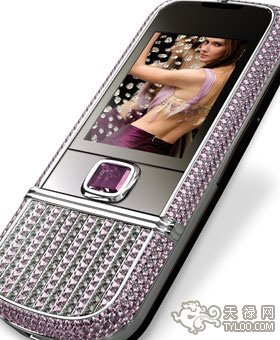 最耀眼的杰作当属这款由奥地利奢侈品设计大师Peter Aloisson作品——诺基亚8800 Arte。该机是在诺基亚8800基础上镶嵌总重超过21克拉的粉色、白色钻石。Peter Aloisson还为摩托罗拉、索尼爱立信以及苹果的iPhone推出豪华版手机。