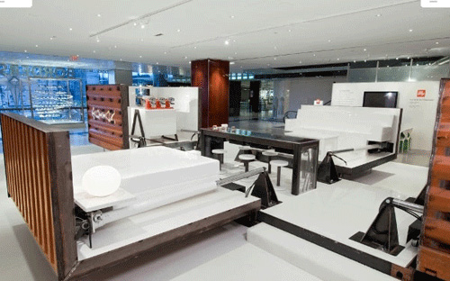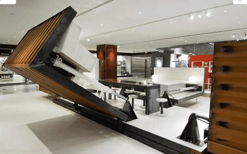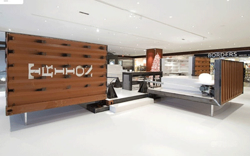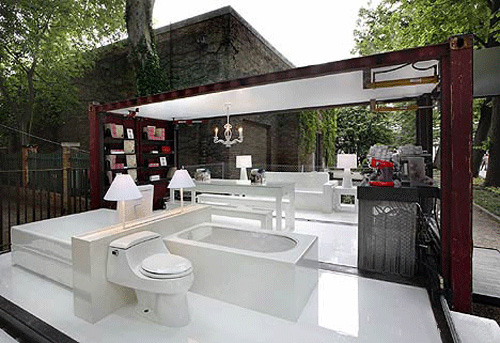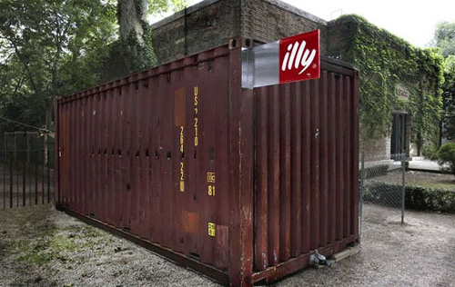 由Adam Kalkin设计的“按钮房子”,被意大利时尚品牌illy咖啡制作成了集装箱咖啡厅。从11月29 -0 7年1 2月2 9日,陈列在纽约市的时代华纳中心。该illy按钮房子是一个建在工业集装箱里的全功能的和可持续的家,只消一按按钮,90秒内就象变花样一样,就会从一个紧凑型货柜进入一个装修全面和功能优越的空间,包括厨房、餐厅、浴室、卧室、起居室和图书馆。这种房子能够适应许多情况,以豪华住宅来满足救灾的房屋,以及商业推广活动,如illy咖啡。