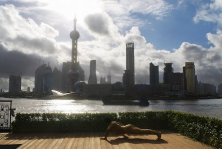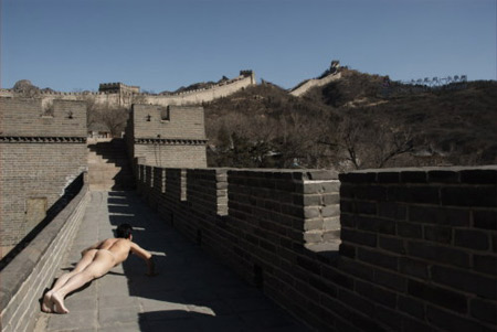 ▲广东电视台主持人区志航在其博客发帖《超越“做俯卧撑”的景观》,声称自己这组以裸体俯卧撑介入人文景观的摄影作品,在“俯卧撑”成流行语的今天,顺理成章成为焦点。