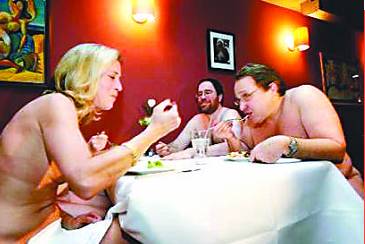 ▲春寒料峭的纽约,街头餐厅的生意一直不温不火。位于曼哈顿中城一家并不起眼的餐馆最近却异常惹眼,原因很简单,他们推出了别开生面的“裸体就餐”活动。