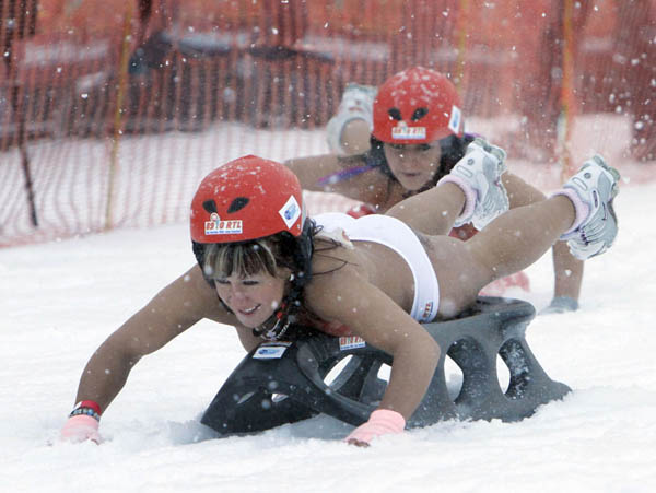 德国小镇举行雪天裸体滑行大赛