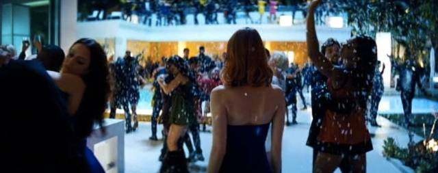 相比之下,《爱乐之城》的舞蹈动作就像是热身运动,但同样也营造了一种美妙的氛围,用赌气斗嘴的歌词,表现了二人爱意的萌芽。