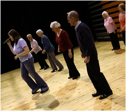 线舞就是重复序列的舞蹈,其中一些人部分年龄站成一排或者几排,然后大家朝着同一个方向踩着同样的步伐跟着音乐跳。