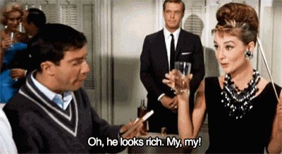 除了衣服,我最爱这部电影的正能量:女主角奥黛丽 · 赫本是一心想傍大款的交际花,男主角是富婆包养的小狼狗 ……
