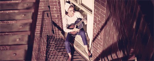 那首《Moon River》也是赫本裹着头巾坐在窗口弹着吉他唱红的。