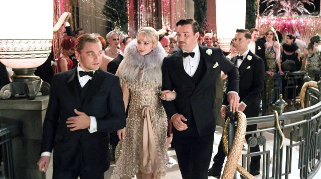 心塞的剧情放一边,电影把 20 年代的骄奢淫逸放大了一百倍,人们每天都穿得 bling bling 地夜夜笙歌,别的都不用干似的。电影里 Daisy 的珠宝来自 Tiffany & Co.,女装是 Prada 设计的,皮草、珍珠、宝石 …… 怎么(看上去)有钱怎么来。