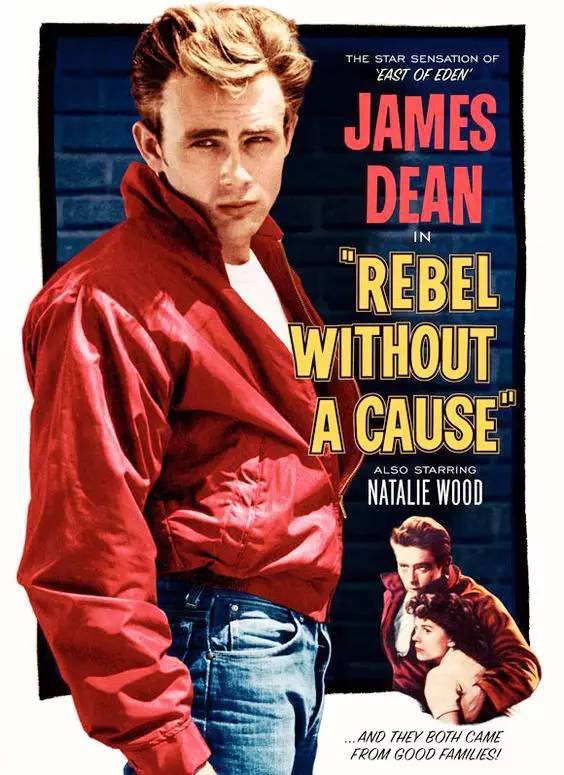 别小看这身红夹克白 T 恤牛仔裤,在 50 年代很轰动的,也是影史上最经典的男士造型之一,让 James Dean 成为一代性感偶像。他后来英年早逝变成了传奇。