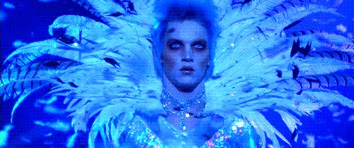 不光音乐华丽,造型更是华丽得无边无际,Jonathan Rhys Meyers 穿上风骚的演出服简直就是 Bowie 附体。电影拿到过 71 界奥斯卡最佳服装奖的提名。