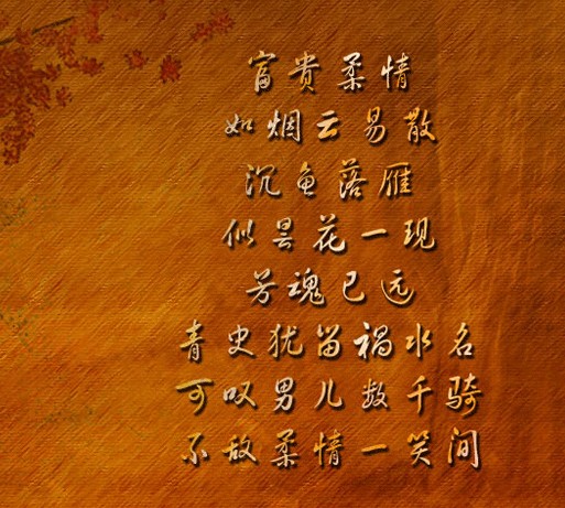 而另一方面,自古帝王不爱江山爱美人,声色犬马也像是他们的专利。于是一个王朝没落的身影便随着一个女人冤屈的脚步,向着一个终点,慢慢地走着。“红颜祸水”便是一个绝好的理由,让帝王在感慨自己的国度走远之时,给后人一个开脱的借口。女人,只不过是一个悲剧的牺牲品.她们只是用自己的脂粉为了自己的地位利益而去争得一点点宠爱和一个男人的怀抱.而最终却被赐死.这也告诫她们,在获得自己想要的东西的同时,也别忘记过度的开采带来的后果.