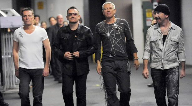 U2摇滚乐队四位队员,博诺(Bono)、The Edge、亚当·克雷顿 (Adam Clayton)、小赖瑞·穆伦(Larry Mullen, Jr.)
