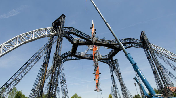 这个舞台设计堪称演唱会史上的奇迹,总共花了4天时间才完成,单就一个爪的用材就需要37辆卡车才能运完。