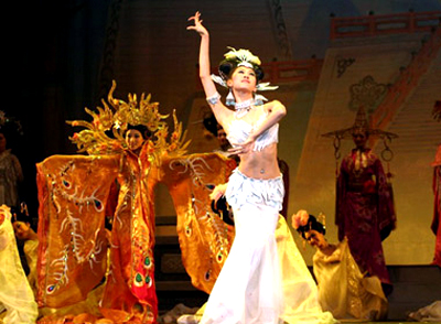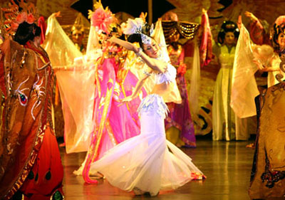 四、《中华五千》呈现出了衣冠王国的雅韵,舞蹈与服饰两者之间联姻,水乳交融。丽人、丽服、丽景、丽情,交相辉映,舞饰嫁接,美不胜收。