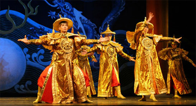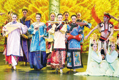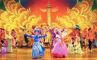三、《中华五千》体现了民族融合的祥和景象,百花齐放,精彩纷呈,汉族、蒙古、羌人、旗人等各民族的舞蹈语汇和服饰风格融合在一起。