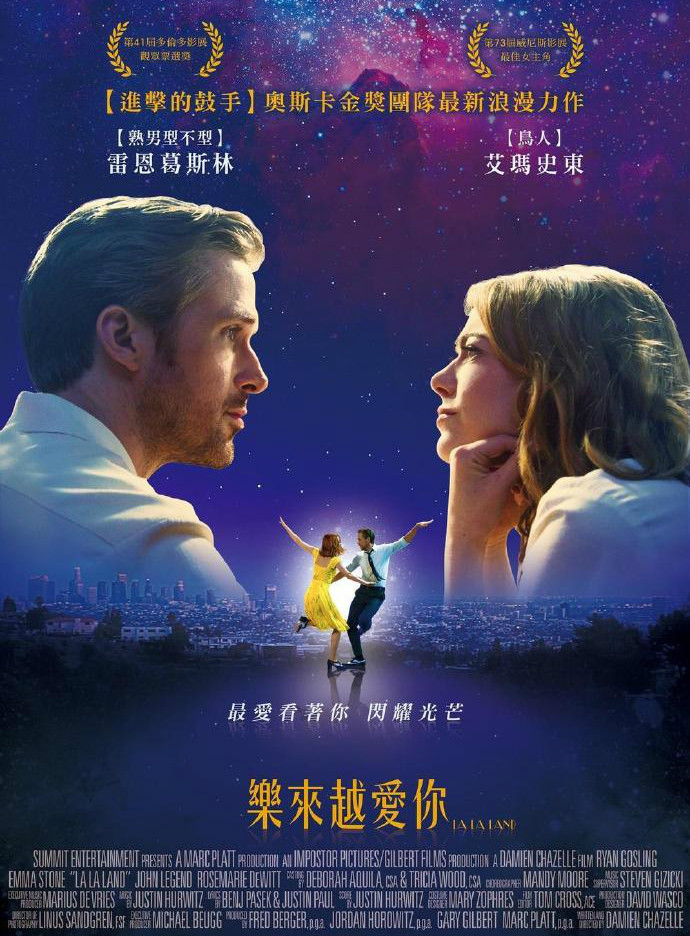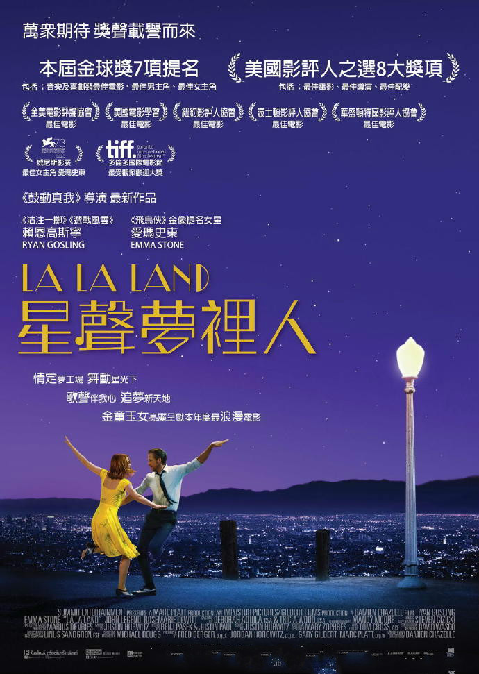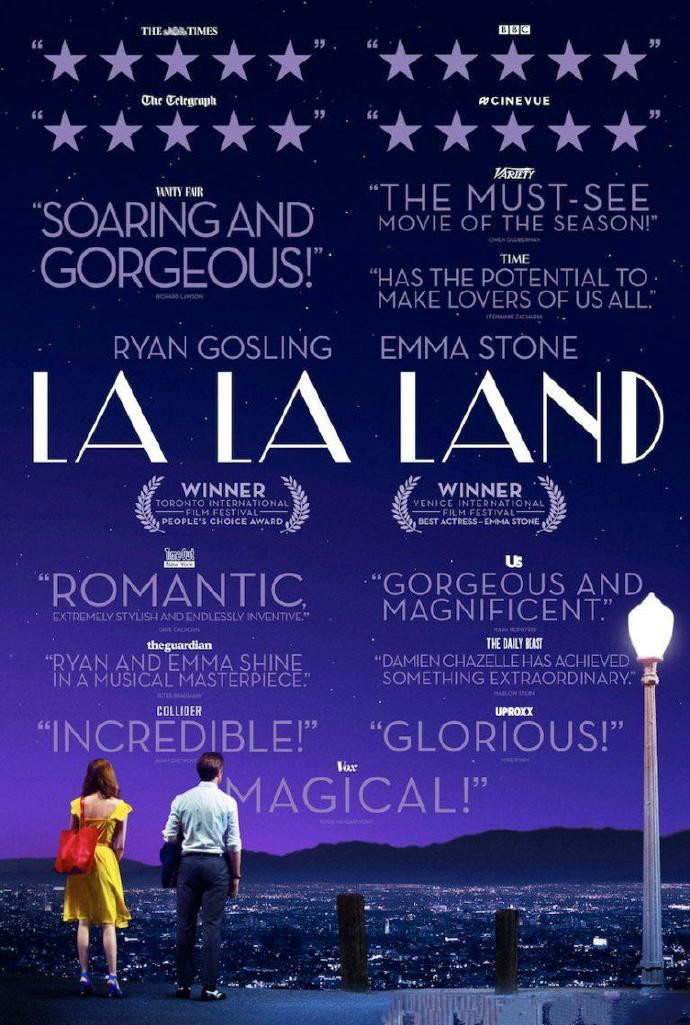 电影的英文名字La La Land中,“La”由Los和Angeles拼成,正是美国第二大城市洛杉矶的别称。而在美国俚语中,La La Land也可用来表示“梦幻之地”,用来形容《爱乐之城》这部充满乌托邦色彩的歌舞片也许再合适不过。一段发生在“天使之城”洛杉矶的追梦旅程,一个关于相遇、相爱、最终分离的爱情故事,电影不仅用明快的舞蹈与动人的歌曲致敬了美国好莱坞上个世纪30年代歌舞片的黄金年代,更用饱含深情的镜头歌颂了那些始终坚持梦想、仍旧相信爱情的人们。