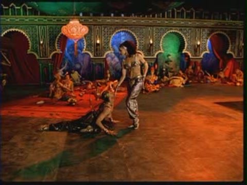第三乐章《王子与公主》:这里是无展开部的奏鸣曲形式,采用了具有阿拉伯风格的深情、温柔、优美的旋律。表现王子的主部主题,以及刻画了王子温柔、文雅的形象。表现公主形象的副部主题轻盈、委婉、柔美,具有东方舞曲风格,王子与公主主题(主部与副部)交织在一起,向人们展现了一副爱情画面,王子主题曲由弦乐奏出。展现了公主婀娜、妩媚、轻柔的舞姿。这两个性格相近的主题,经过多次变奏,交替发展、缠绕,烘托出公主优美的舞姿和王子的热烈深情,最后以王子主题再现木管乐器流畅、轻巧的下行,轻轻地结束第三乐章。
