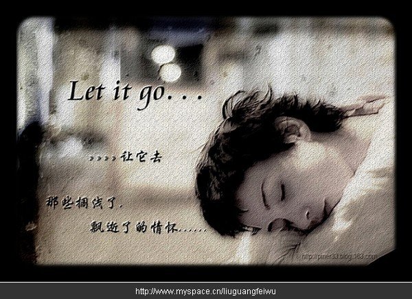 只是,聽著一個略帶沙啞的女聲不斷地說著let it go,有時平靜,有時激昂。 重複會變成一種條件反射,習慣勢力或者會強大到令人恐懼,那是一種心理暗示。
