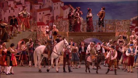 欣赏著名的莫斯科波修瓦芭蕾舞(Bolshoi Ballet 2018—2019)录像节目《唐吉诃德》。著名的芭蕾舞剧《唐吉诃德》是根据西班牙作家赛万提斯(Cervantes)的经典小説《唐吉诃德》改编,原编舞为佩提帕(Marius Peptipa)和高尔斯基(Alexander Gorsky),作曲者为明库斯(Leon Minkus),作品于1869年12月26日在莫斯科波修瓦剧院首演,所以一直成为波修瓦的保留剧目。剧情如下: