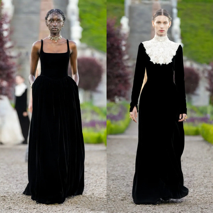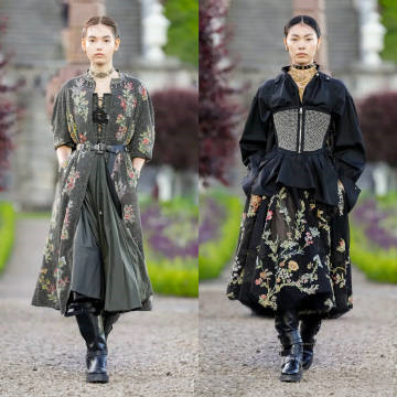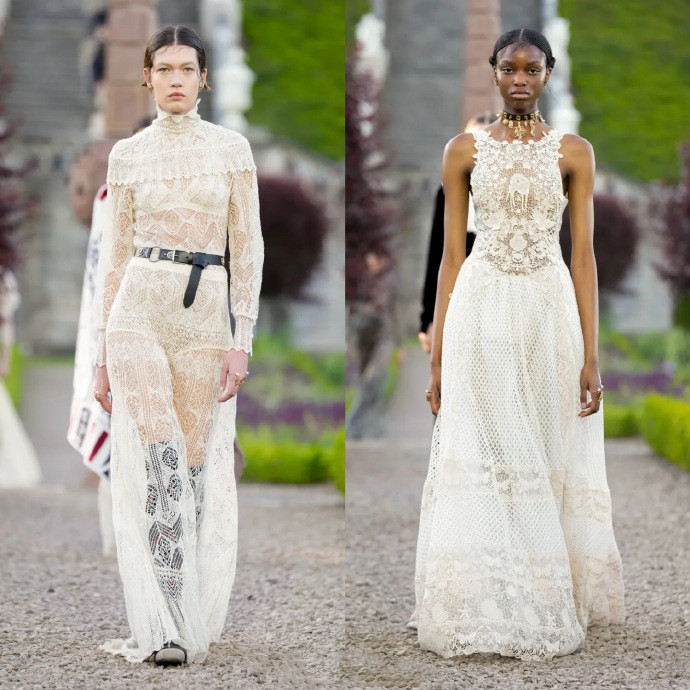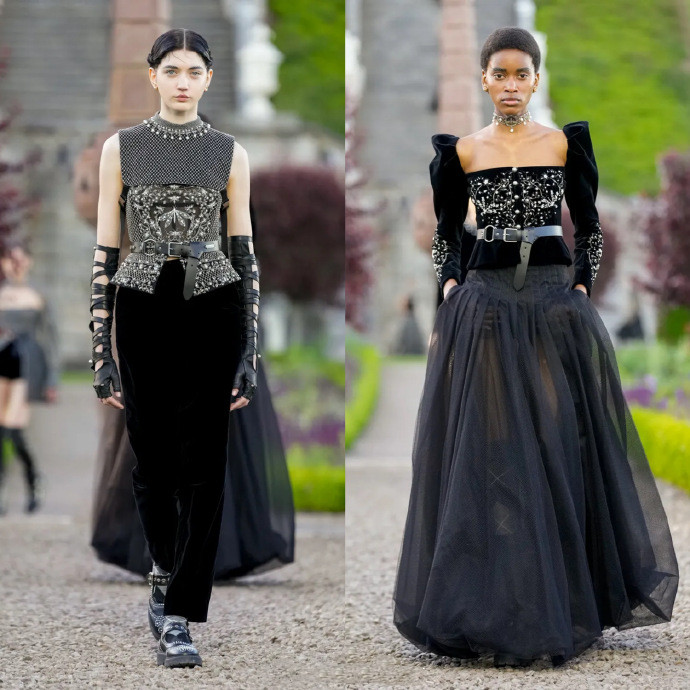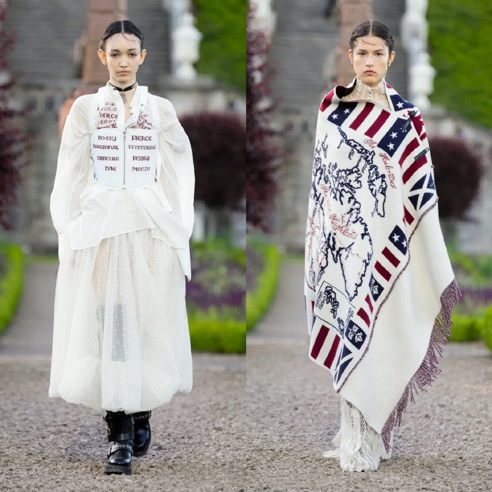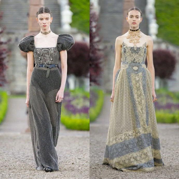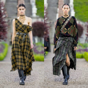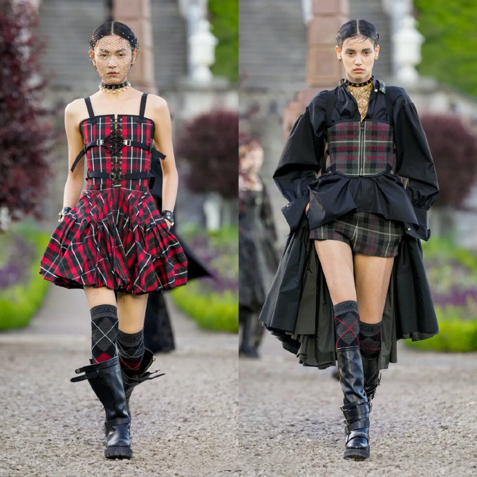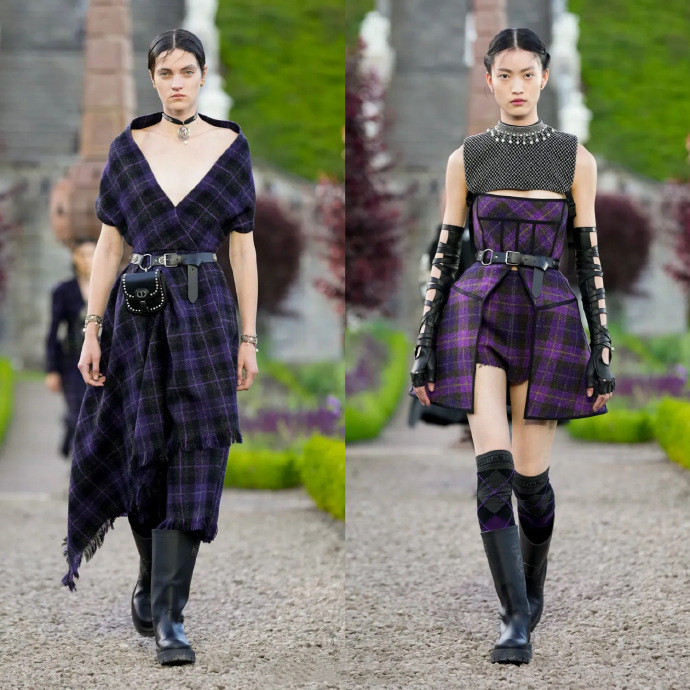 田园风情,惬意时光,这次Maria Grazia Chiuri从迪奥先生的苏格兰时装首秀记录影像中获取灵感,把秀搬至苏格兰的德拉蒙德城堡举行,融进苏格兰格纹和刺绣,演绎了一场对法国时装艺术与苏格兰文化的碰撞与致敬。