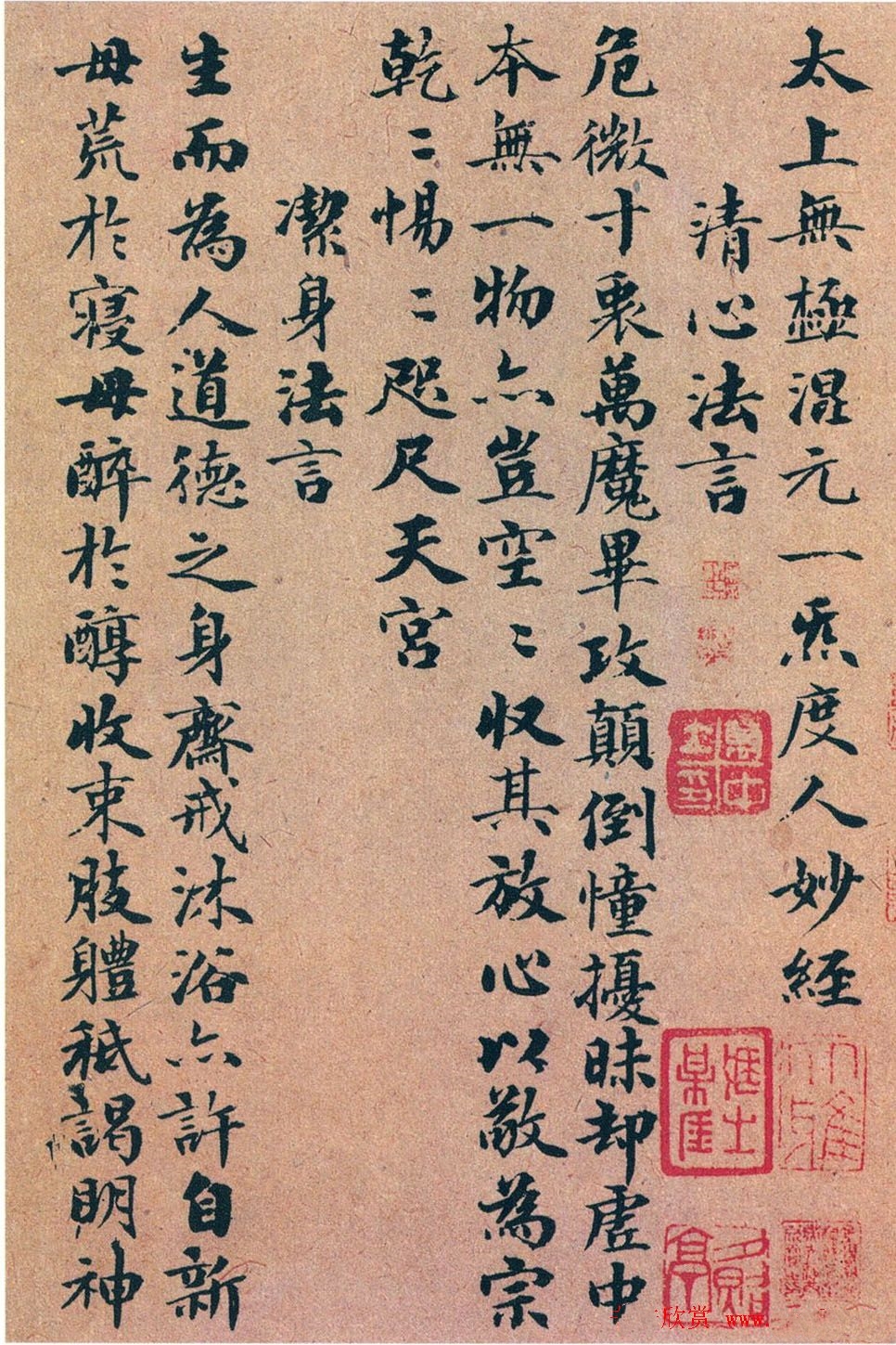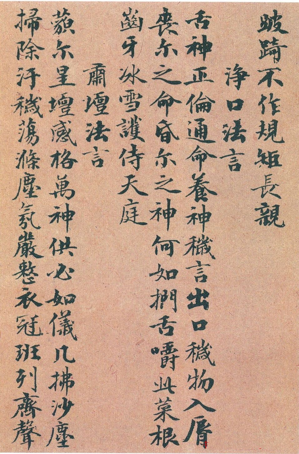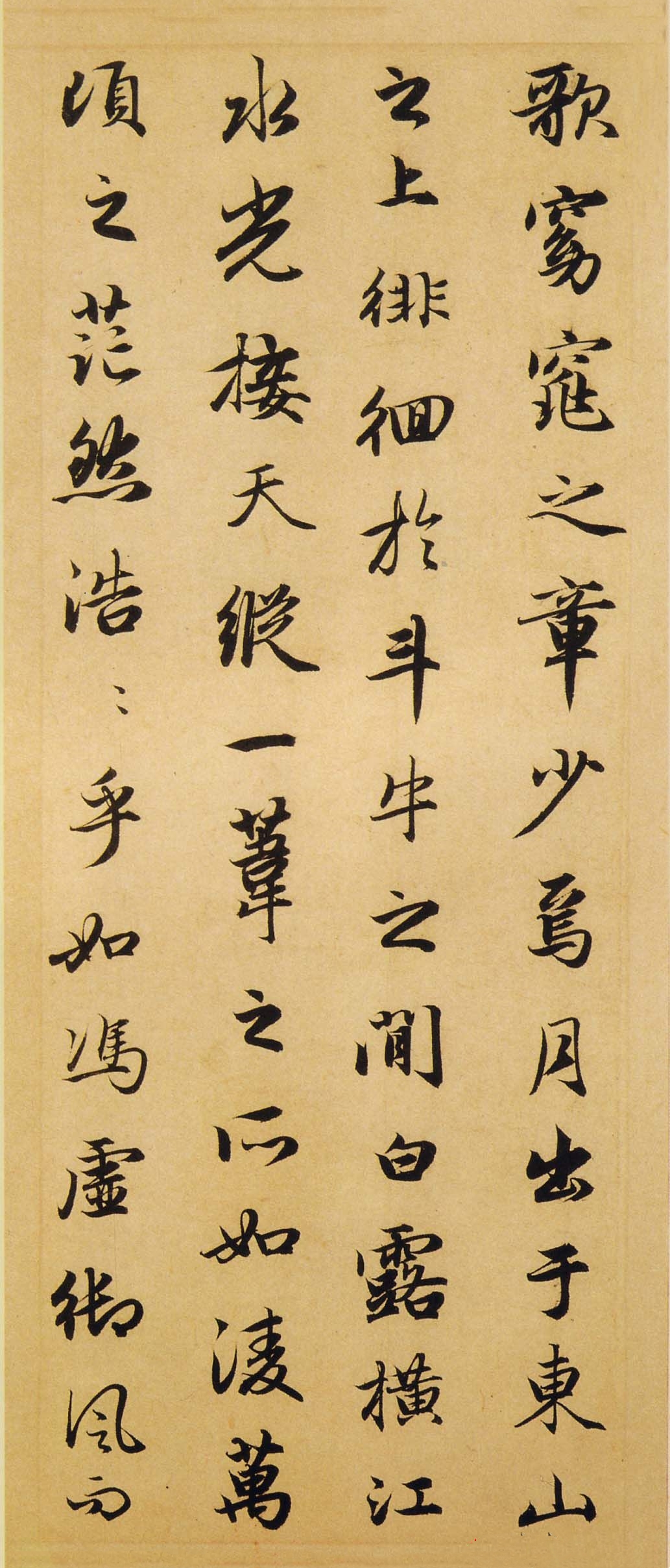 在绘画上,山水、人物、花鸟、竹石、鞍马无所不能;工笔、写意、青绿、水墨,亦无所不精。他在我国书法史上已占有重要的地位。自五岁起,赵孟罹涂佳椋肝藜淙眨敝亮偎狼坝坦凼樽髯郑晌蕉允榉ǖ目岚锏角橛卸乐拥牡夭健K谱⒘ァ⒄妗⑿小⒉菔椋纫钥⑿惺橹朴谑溃对贰繁敬玻“孟钭Ψ至フ嫘胁菸薏还诰沤瘢煲允槊煜”。元鲜于枢《困学斋集》称:“子昂篆,隶、真、行、颠草为当代第一,小楷又为子昂诸书第一。”其书风遒媚、秀逸,结体严整、笔法圆熟、世称“赵体”。与颜真卿、柳公权、欧阳询并称为楷书“四大家”。