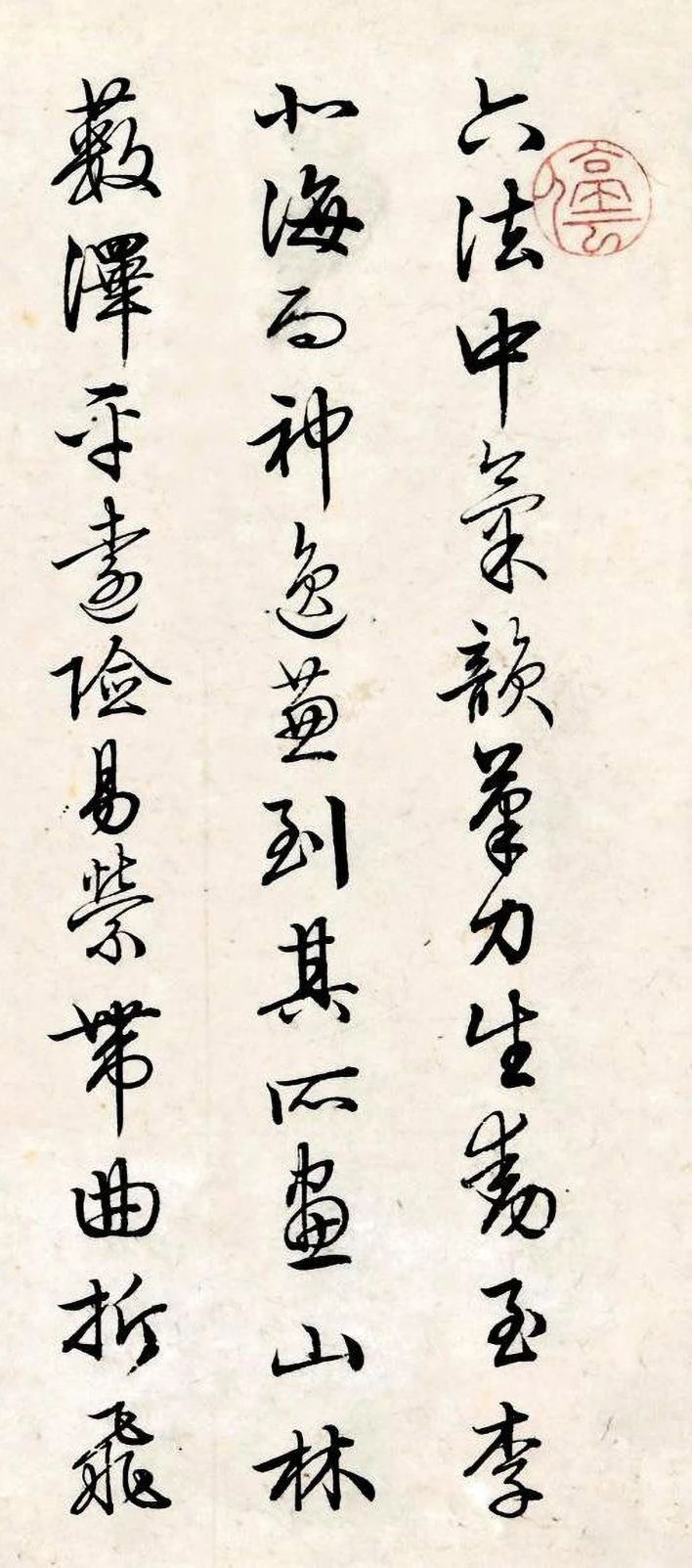 此幅作品就“六法”中的第一法“气韵生动”展开论述。提出:“学不师古,如夜行无火”。