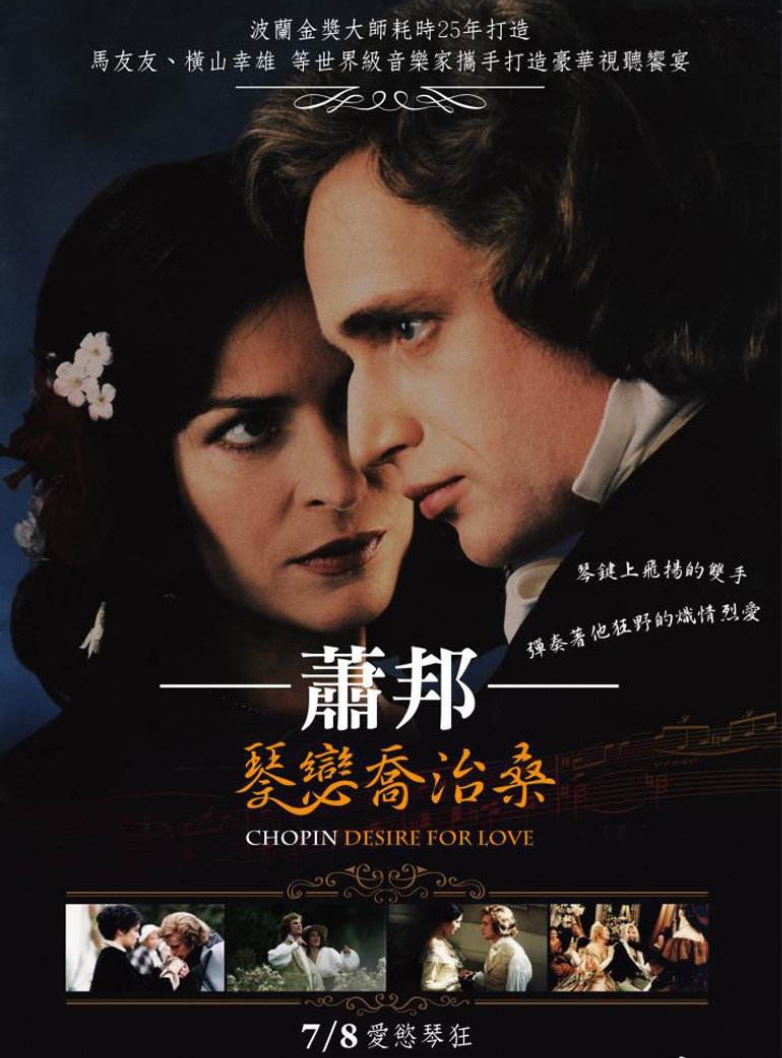 三部有关肖邦和乔治桑爱情的电影。同是肖邦的钢琴,肖邦和乔治桑演奏了不同的乐章。三部影片里的肖邦好像都不是想象中的理想肖邦,也许肖邦的钢琴曲太浪漫美好脍炙人口,太经典,所有相关联的,即使是传奇,也是黯然失色。音乐也许比绘画更容易渗入人的灵魂。欣赏绘画的人多多少少要懂些绘画,而被音乐打动的人却不需要知道一个音符。神奇的Melody。