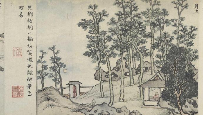 1、月上:几树梧桐 一轮初驾 微风飘拂 景色可喜