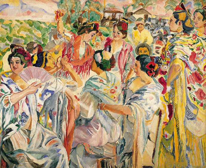 西班牙后印象派画家Francisco Iturrino(1864-1924)的作品Manolas。