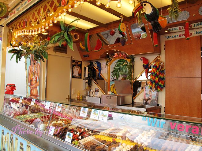 小公园的摊位,新鲜水果裹上巧克力,看着色彩心情就愉悦。