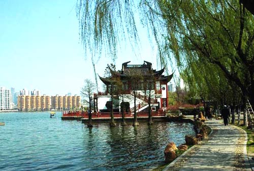 自古有“江南第一名湖”、“金陵第一名胜”、“金陵四十八景之首”等美誉。湖内有胜棋楼、郁金堂、赏河厅、光华亭等建筑。郁金堂院外水池中有一尊莫愁女石雕像。被誉为“金陵第一名湖”。