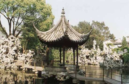 沧浪亭:苏州最古老的园林,原为五代吴越广陵王的池馆。沧浪亭以清幽古朴见长,融园内的假山与园外的池水于一体,在假山与池水之间,隔着一条复廊,廊壁开有花窗,透过漏景,沟通内山外水。据说全园有108种花窗样式,图案花纹变化多端,构作精巧,是苏州园林花窗的典型。