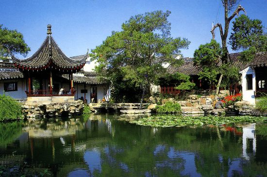 拙政园:位于娄门内东北街178号,是苏州园林中最大的,也是最著名的一座。拙政园始建于明代,王献臣是该园第一位主人。他在嘉靖、正德年间官居监察御史,晚年仕途不得意,罢官而归,买地造园,借《闲居赋》“拙者之为政”句意,取名为拙政园。园内主要景点有:兰雪堂、芙蓉榭、秫香馆、放眼亭、远香堂、小沧浪、留听阁、浮翠阁等。