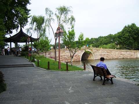 站在西湖的西泠桥上,既可近眺里湖,又可远瞩外湖;西泠桥既在孤山之西,又可通往北山,白堤近在咫尺,苏堤又隐约在望。西泠桥不仅地理位置好,而且古迹韵事,令人怀想。在宋代以前这里不叫"西泠"而叫"西林"或"西村"。到明末李流芳时,桥已改筑,而且人们习惯称它为"西泠桥"了。