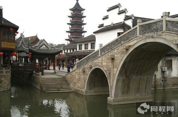 秦风塔始建于梁天监二年{公元503年},为砖木结构七层方塔,造形独特、形态绰约,远看酷似一位亭亭玉立的少女,故又有“美人塔”之称。“千墩塔上塔层层、高入云霄碍野鹰”,登塔,千灯古镇浦畔水乡美景,尽收眼底。
