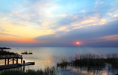 太湖烟波浩淼,气势磅礴。极目远望,天水一色。不同的季节和气候有不同的景象。古人日“有浪即山高,无风还练静”,若风和日丽,则波光粼粼,山辉川媚;如风雨交加,则白浪滚滚,汹涌澎湃;倘薄雾轻霭,则烟云变幻,扑朔迷离;当晨曦暮晖,则彩霞万道,满湖金鳞;湖上满月时,则流光万顷,山影荡漾,景色秀美而意趣无穷。