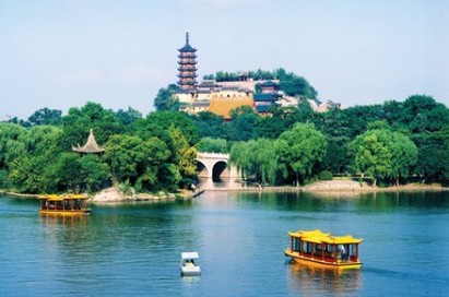 瘦西湖园林群景色怡人,融南秀北雄为一体,在清代康乾时期即已形成基本格局。所谓“两岸花柳全依水,一路楼台直到山”,其名园胜迹,散布在窈窕曲折的一湖碧水两岸,俨然一幅次第展开的国画长卷。
