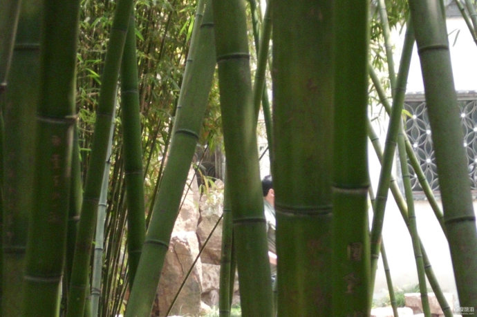 个园是一处典型的私家住宅园林。从住宅进入园林,首先映入眼帘的是月洞形园门。门上石额书写“个园”二字,“个”者,竹叶之形,主人名“至筠”,“筠”亦借指竹,以为名“个园”,点明主题。园门两侧各种竹子枝叶扶疏,“月映竹成千个字”,与门额相辉映;白果峰穿插其间,如一根根茁壮的春笋。主人以春景作为游园的开篇,想是有“一年之计在于春”的含意吧!透过春景后的园门和两旁典雅的一排漏窗,又可瞥见园内景色,楼台、花树映现其间,引人入胜。进入园门向西拐,是与春景相接的一大片竹林。竹林茂密、幽深,与那几颗琼花展现出了生机勃勃的春天景象。